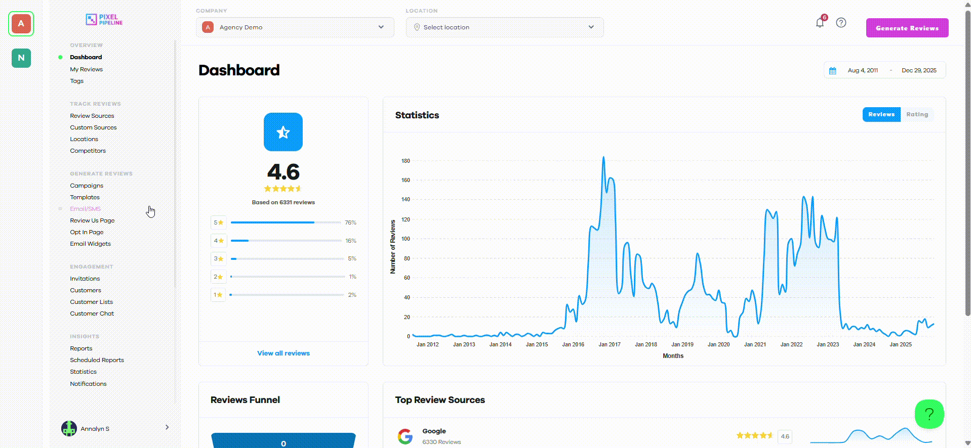 The Opt-in landing page allows your customers (or employees on their behalf) to opt-in to receive review invitations from you, for example, from a kiosk in your store. You can set up this landing page by visiting Generate Reviews from your menu and then Opt-In Page.