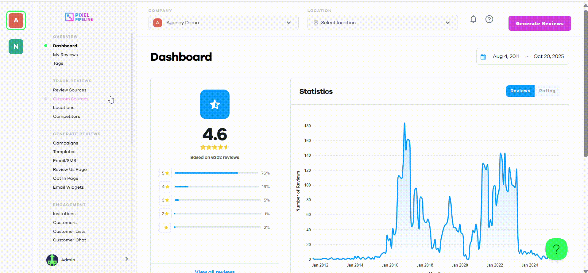 As an agency owner, you will receive notifications 2 and 3 from your own account, and all notifications will be switched off for client accounts that you create. Should you wish to receive notifications from your client reviews, you can switch to their account and visit the Notifications page from Insights.