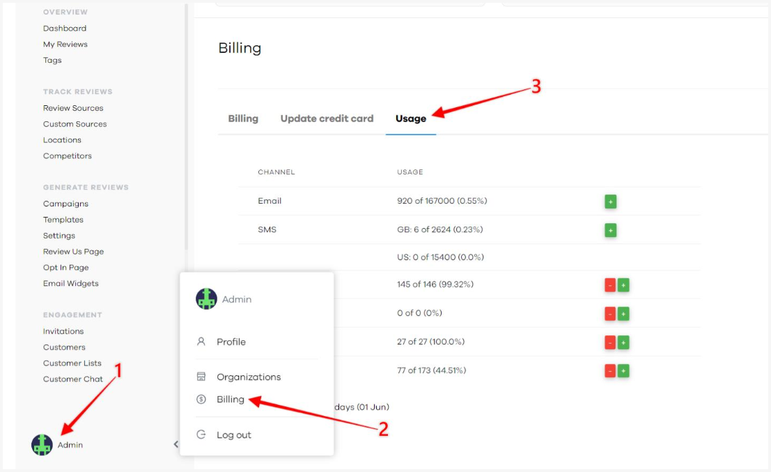 You have the option to buy more credits once you reach the limit for review invitations on your account. Check your usage by visiting your Account menu-> Billing -> Usage to avoid issues sending your invitations.
