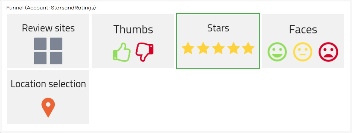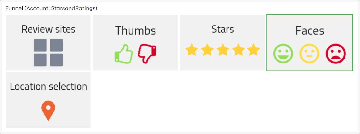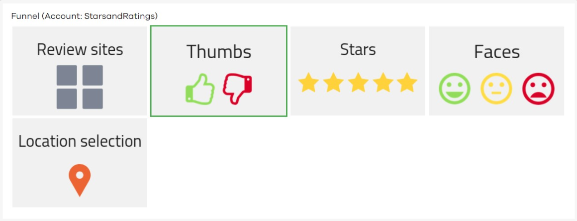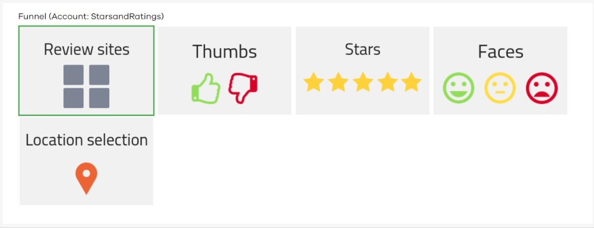 This option allows you to select how your customers are shown your review sites - either they are shown directly (Review Sites funnel), or they can be shown based on customer satisfaction (Thumbs, Stars, and Faces funnel).