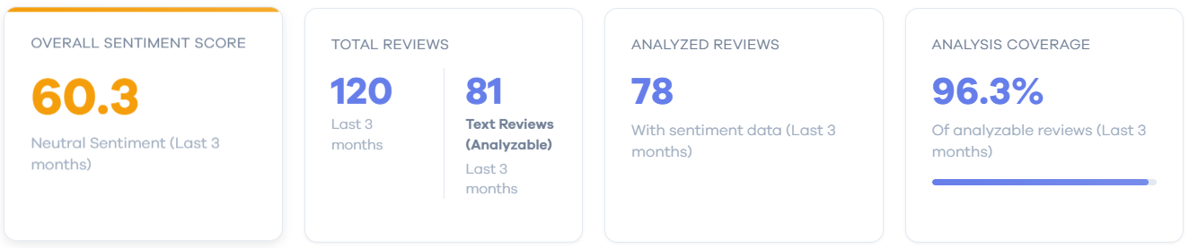 Sentiment Distribution: A breakdown of positive, neutral, and negative feedback so you can easily gauge balance.